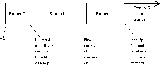 - Status U: Uncertain. The bank's payment instruction for the sold currency can no longer be cancelled unilaterally; receipt of the bought currency is due, but the bank does not yet know whether it has received these funds with finality. In normal circumstances, the bank expects to have received the funds on time. However, since it is possible that the bought currency was not received when due (e.g. owing to an error or to a technical or financial failure of the counterparty or some other intermediary), the bought amount might, in fact, still be at risk.